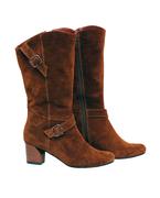 Оригинальные женские сапоги от Shoe Qwix коричневого цвета. Модель выполнена в очнь красивом цвете коньячно - коричневом, пара такого тона способна колоритно дополнить любой Ваш образ и стать не заменимой вещью в гардеробе. Невысокий каблучок невероятно красит эту модель. К тому же он еще и удобный. Подошва выполнена из противоскользящих материалов. Материалы и компоненты: верх: замша (натуральная); подклада: нерпа; подошва: кожвалон. Обувь Shoe Qwix - сделано в Украине.